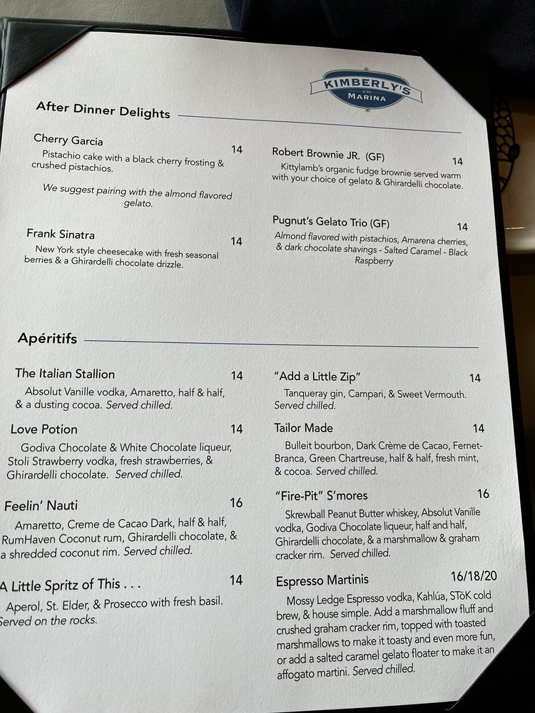 Don’t miss the seasonal cocktail selections, which pair beautifully with your meal. Kimberly’s at the Marina promises both culinary excellence and genuine hospitality, making each visit unforgettable.
